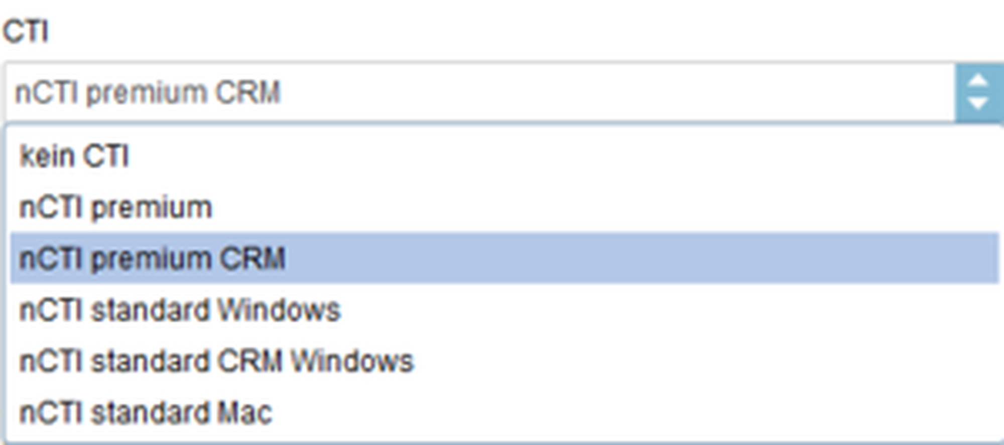 Im Adminportal muss für die Nebenstelle die CTI-Option „NCTI premium“ oder „NCTI premium CRM" ausgewählt sein