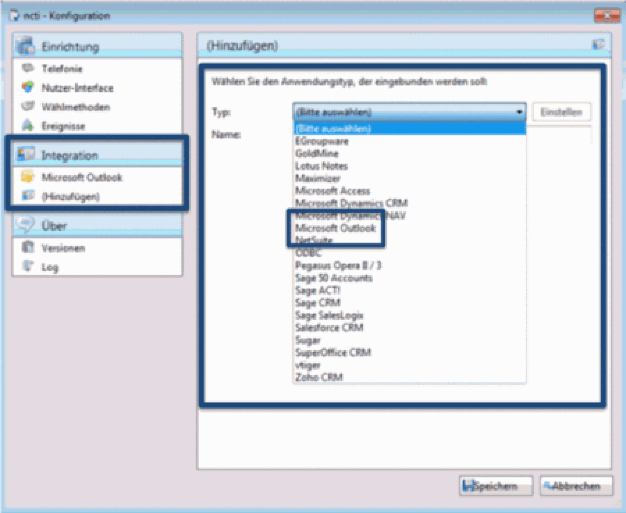 -Um Outlook zu aktivieren wählen Sie bitte Microsoft Outlook aus der Liste aus und klicken Sie abschließend auf Speichern.