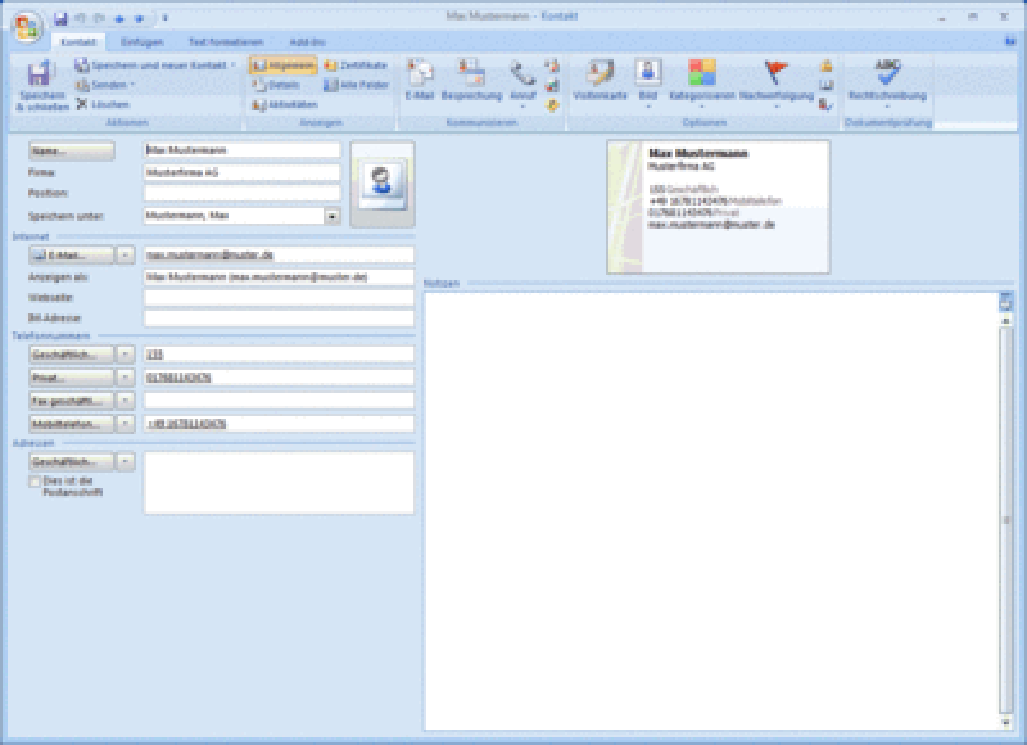 zu klicken. Hierdurch öffnet sich der Kontakt mit allen Details direkt aus dem Outlook heraus und Sie können ggf. eingetragene Notizen nachlesen, bevor Sie den Call annehmen.