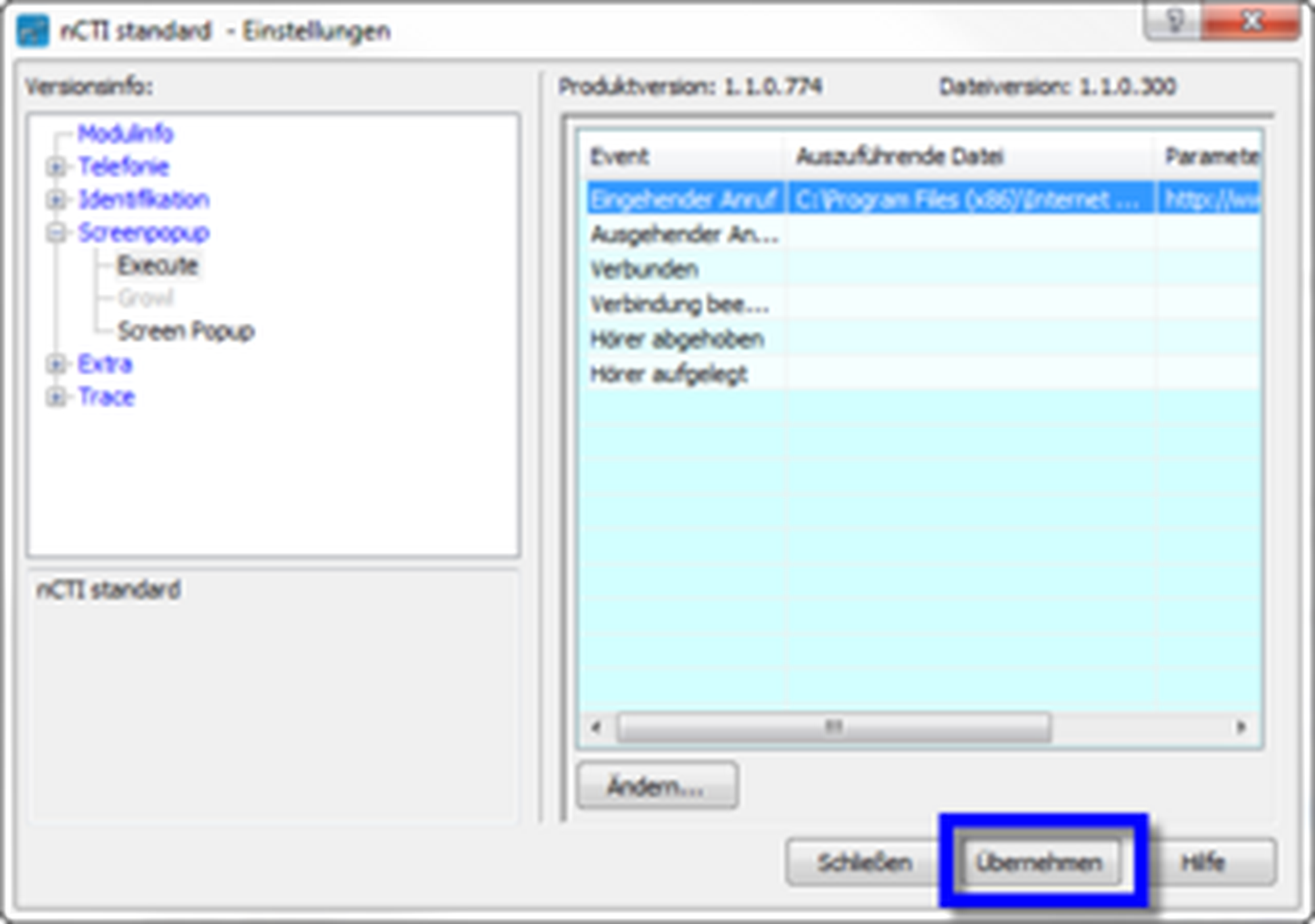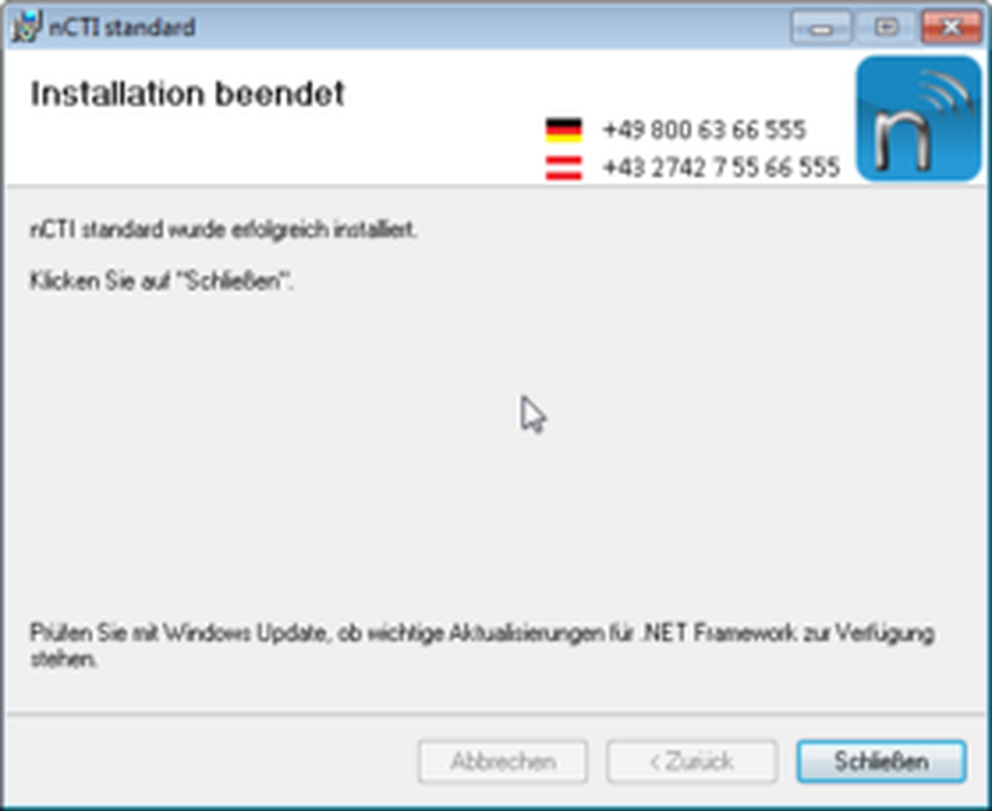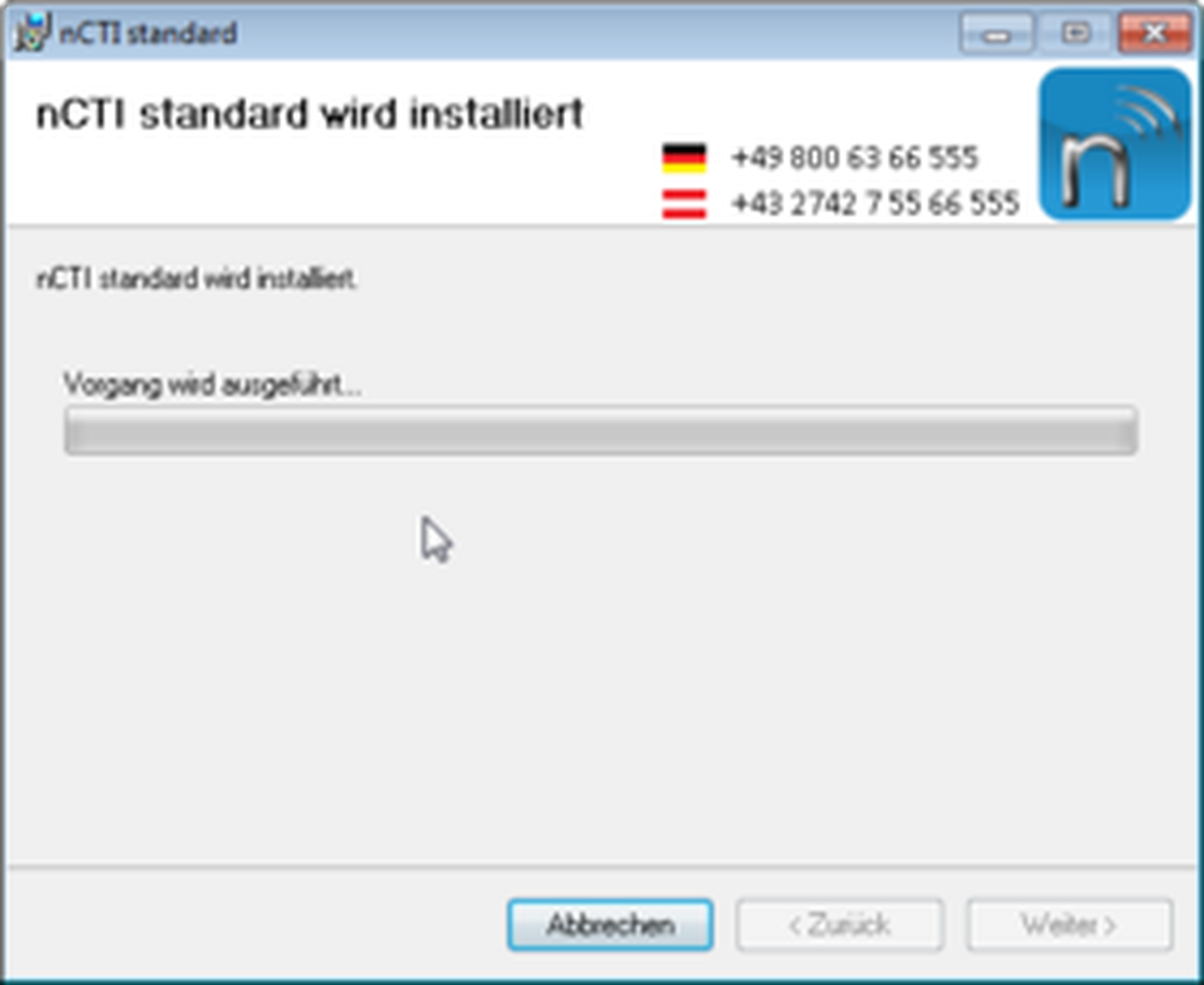 ⇒Die Einstellungen werden jetzt übernommen und Sie können mit dem NCTI standard / CRM Client starten.