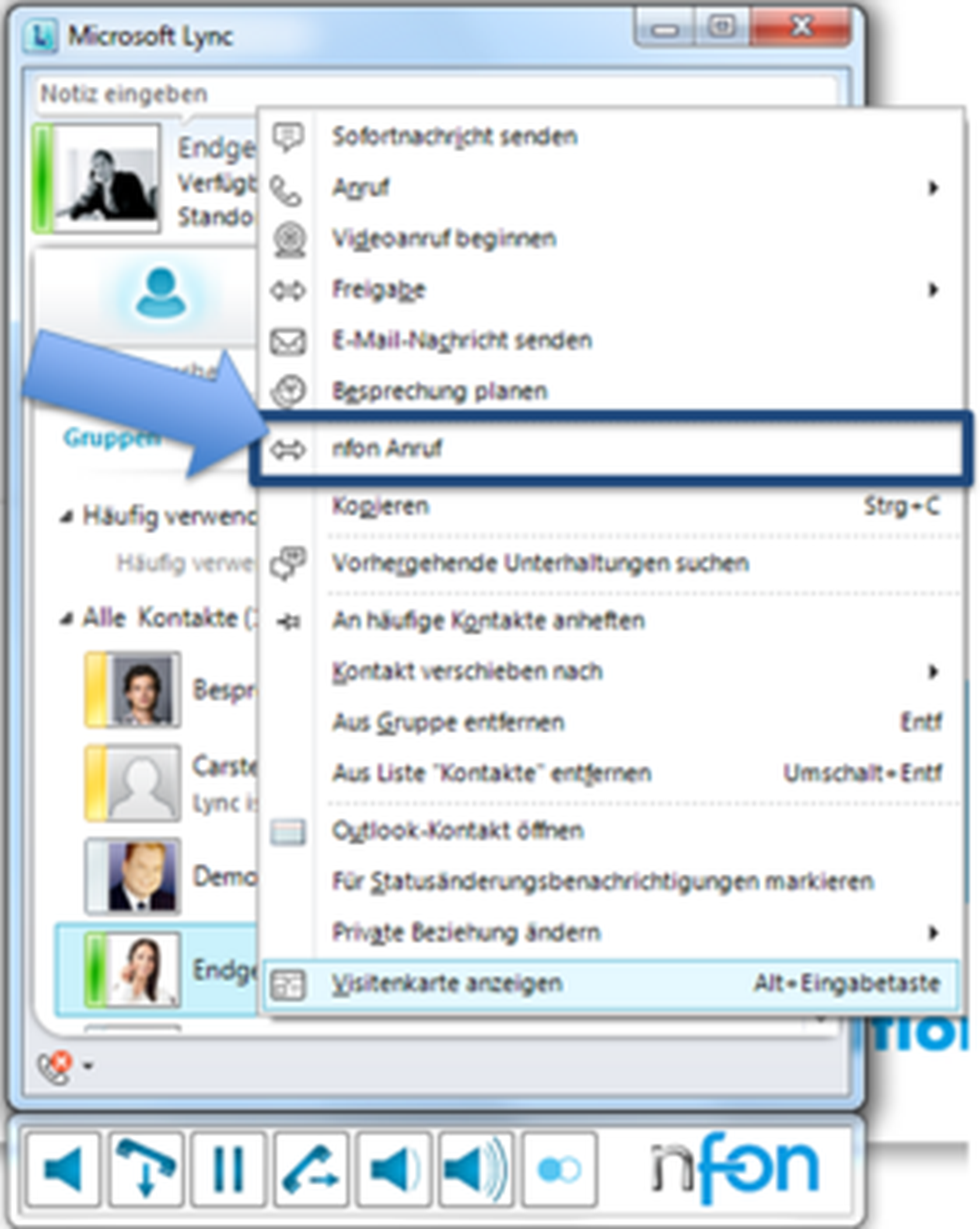 Bitte beachten Sie, dass keine Anrufe aus der Personenansicht möglich sind.