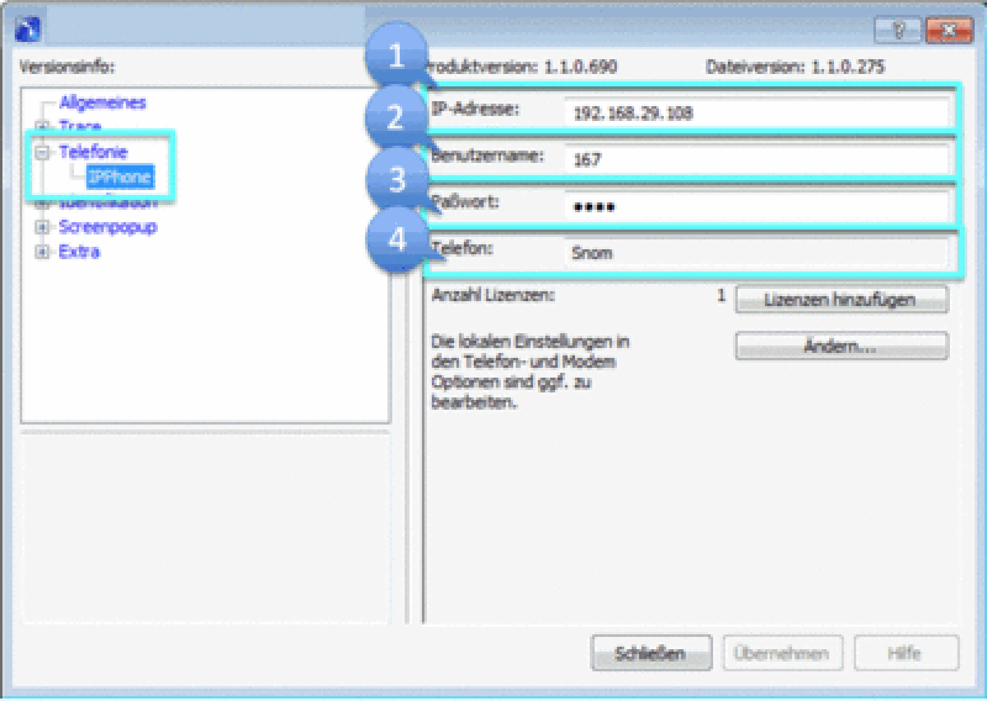 Der TSP Treiber (Tapi Service Provider) wird mit der Installation automatisch auf Ihrem System installiert. Danach kann von TAPI kompatiblen Geräten (z.B. Software) der TSP Treiber als Telefonleitung gewählt werden. Das ist von Hersteller zu Hersteller unterschiedlich. Bitte informieren Sie sich, wo genau in Ihrer Software (z.B. Kundenverwaltung) der TAPI Support konfiguriert wird.