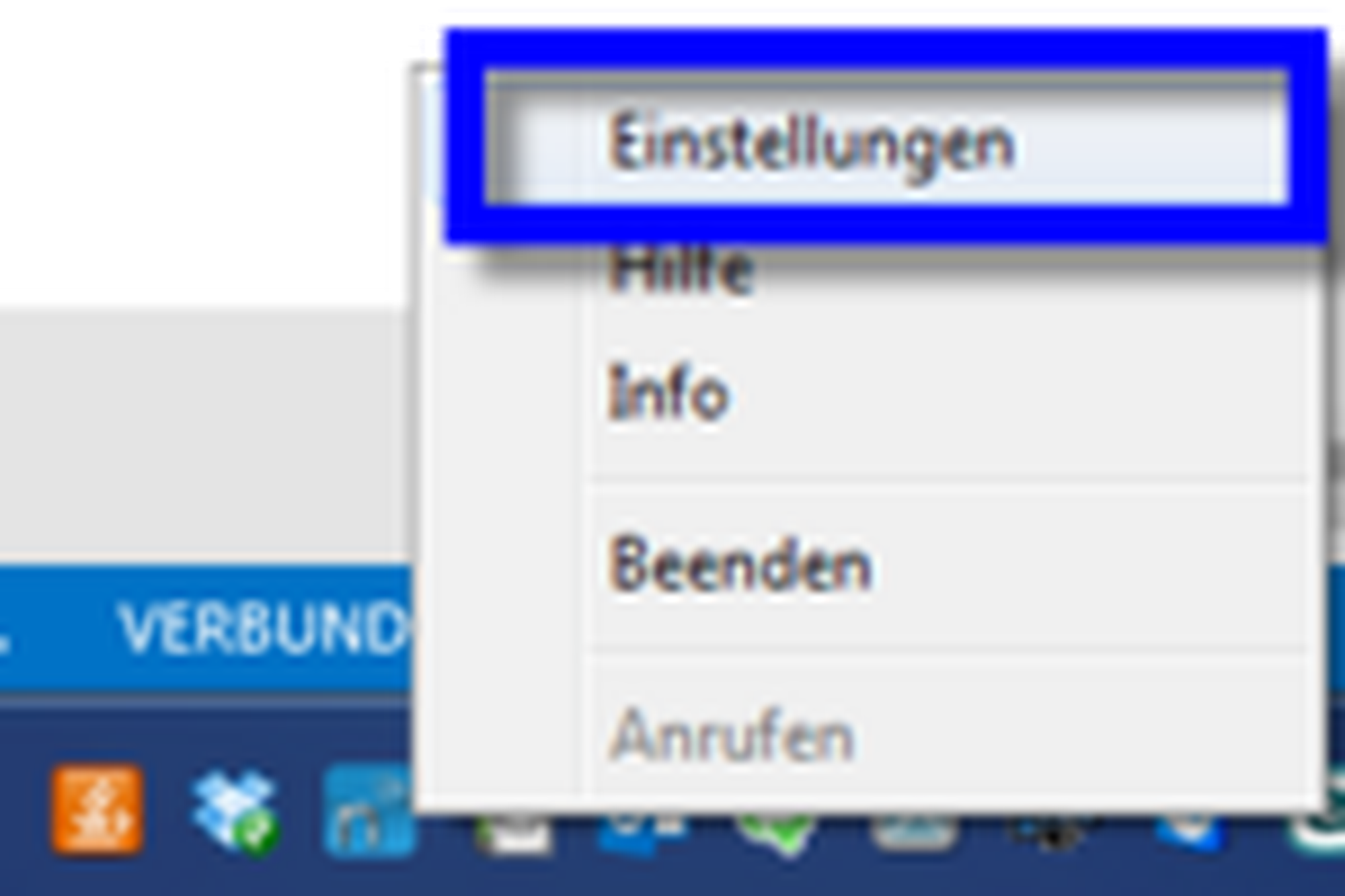 -Wenn Sie individuelle Ereignisse bei bestimmten Szenarien anlegen möchten, klicken Sie mit der rechten Maustaste auf das blaue NCTI standard-Icon im Tray und wählen Sie Einstellungen.
