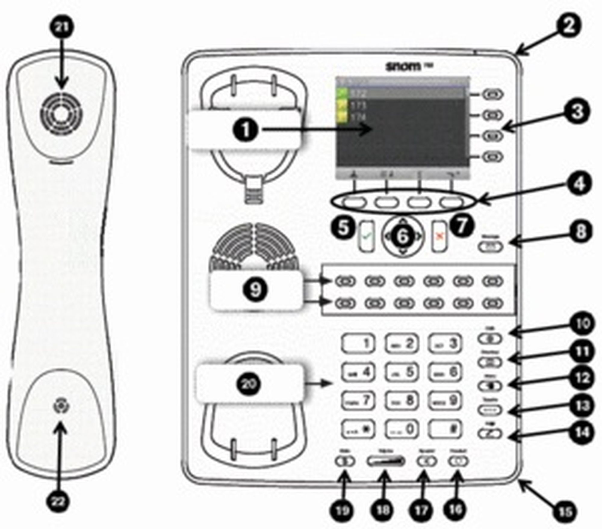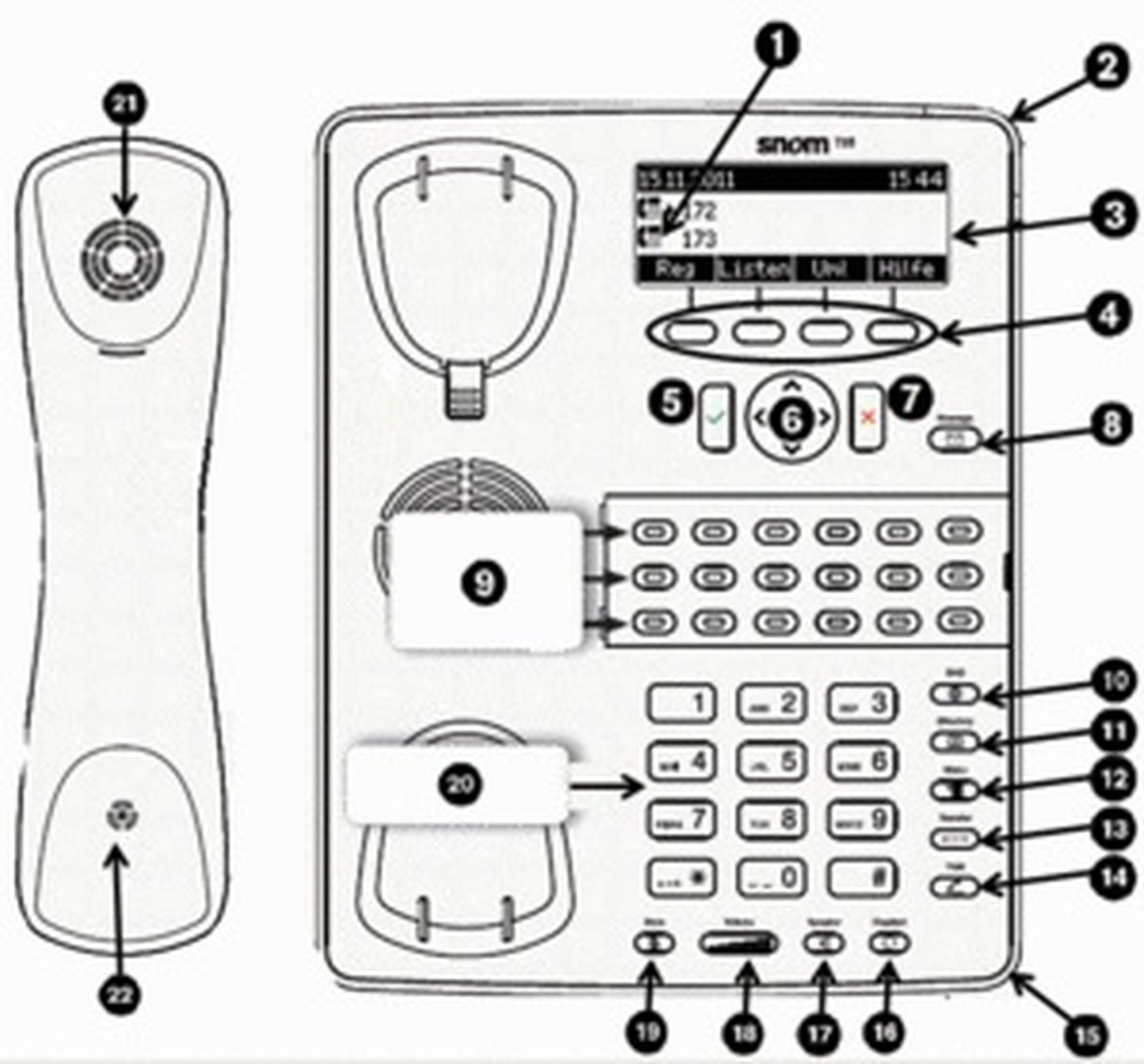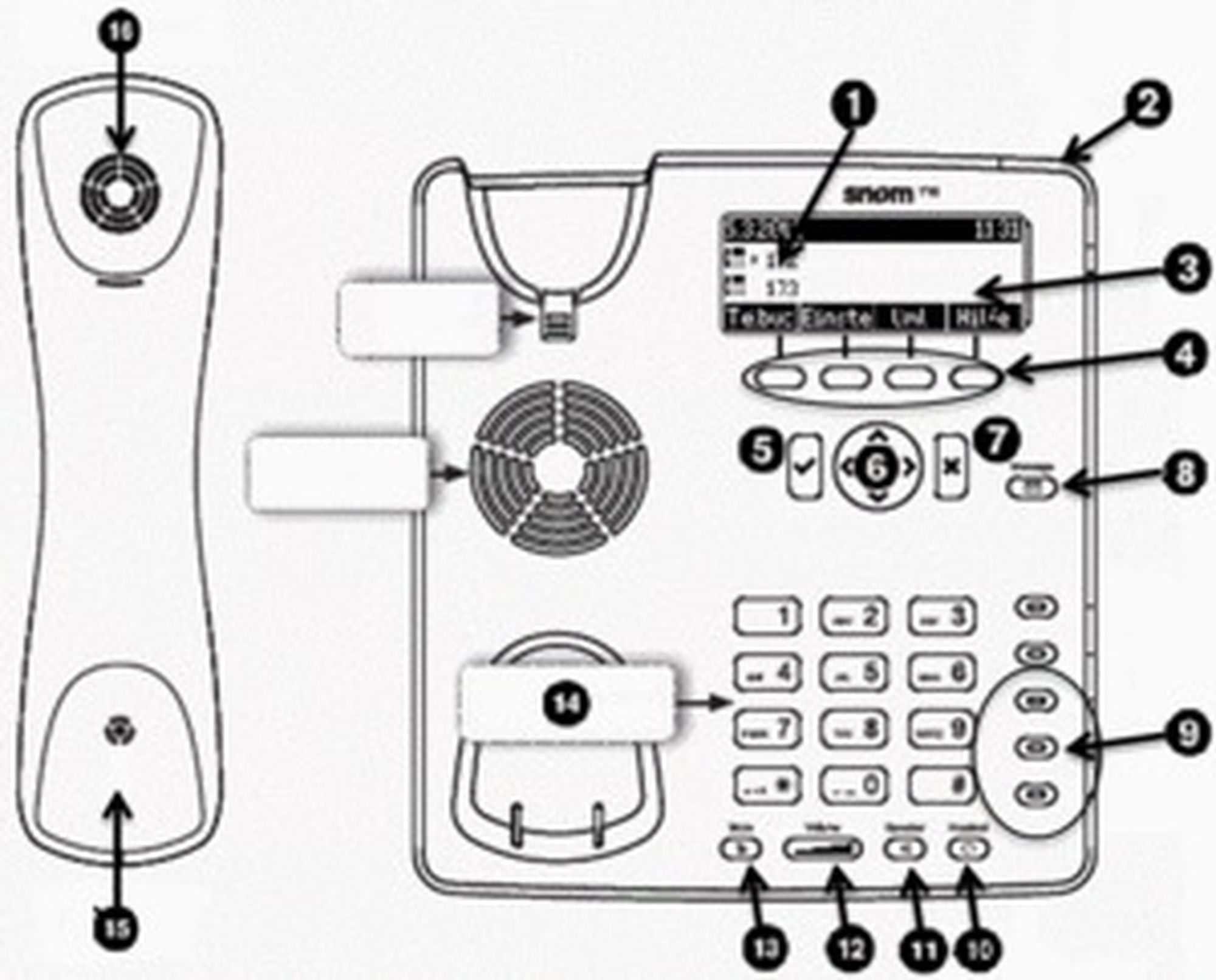 | 13 | Mute key with LED / DND key when in idle mode |