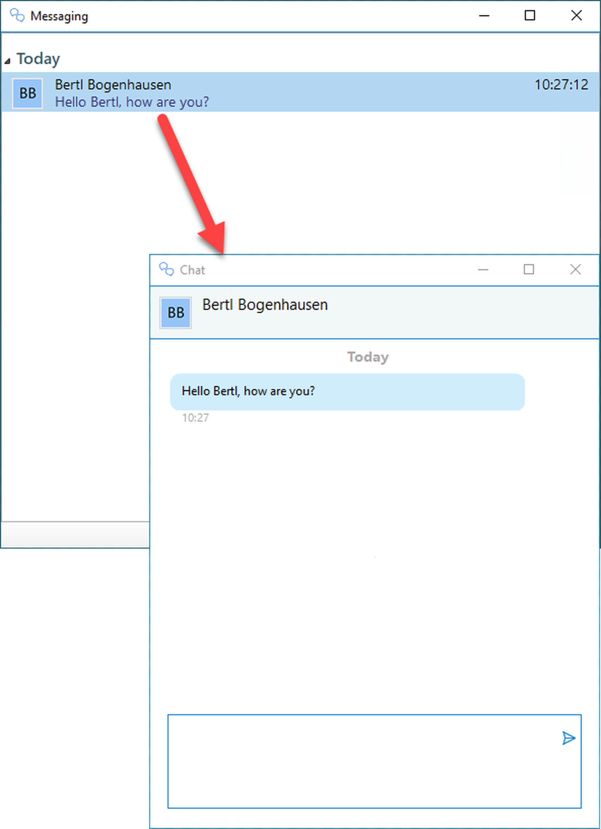 ⇒ The messenger window opens.
