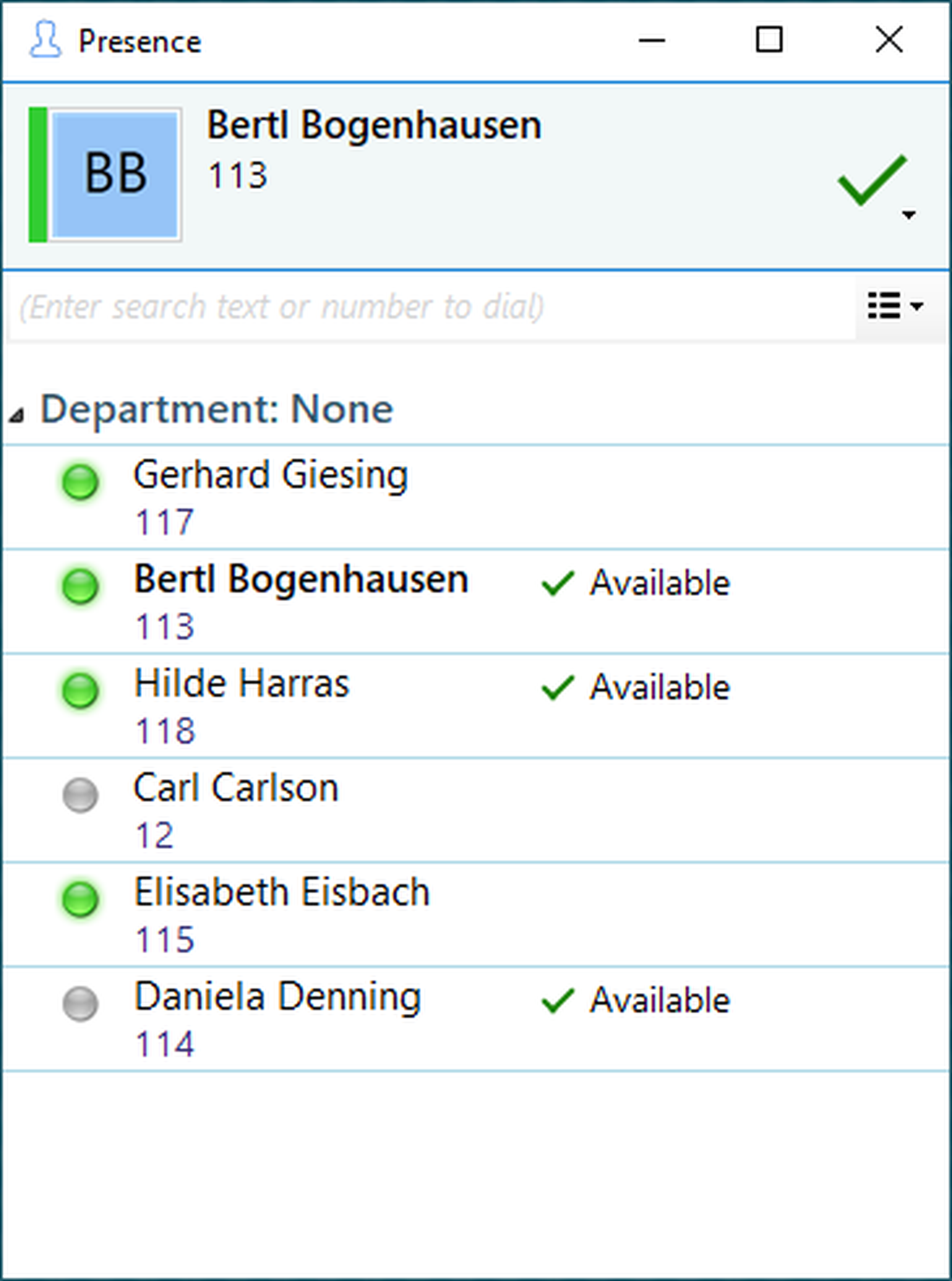 Presence Management enables the user to quickly overview the availability of all participants. Via different icons the presence information of all participants is clearly displayed.