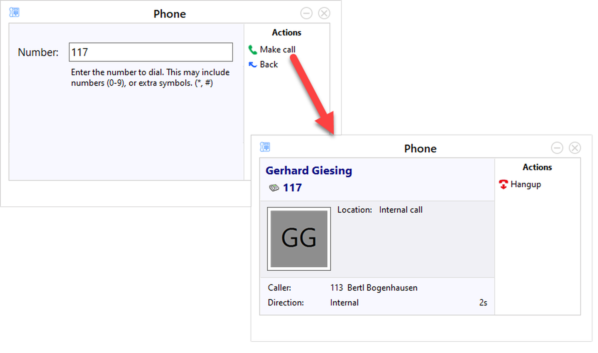 By clicking on the telephone number, the call is initiated.