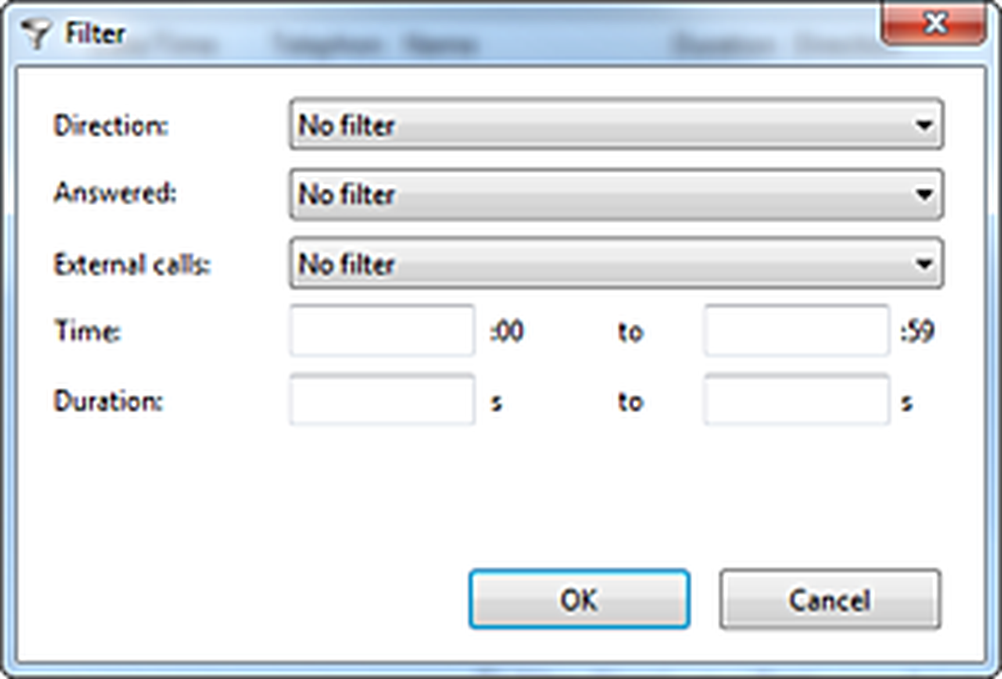 | Duration | Show only calls of a certain duration. |