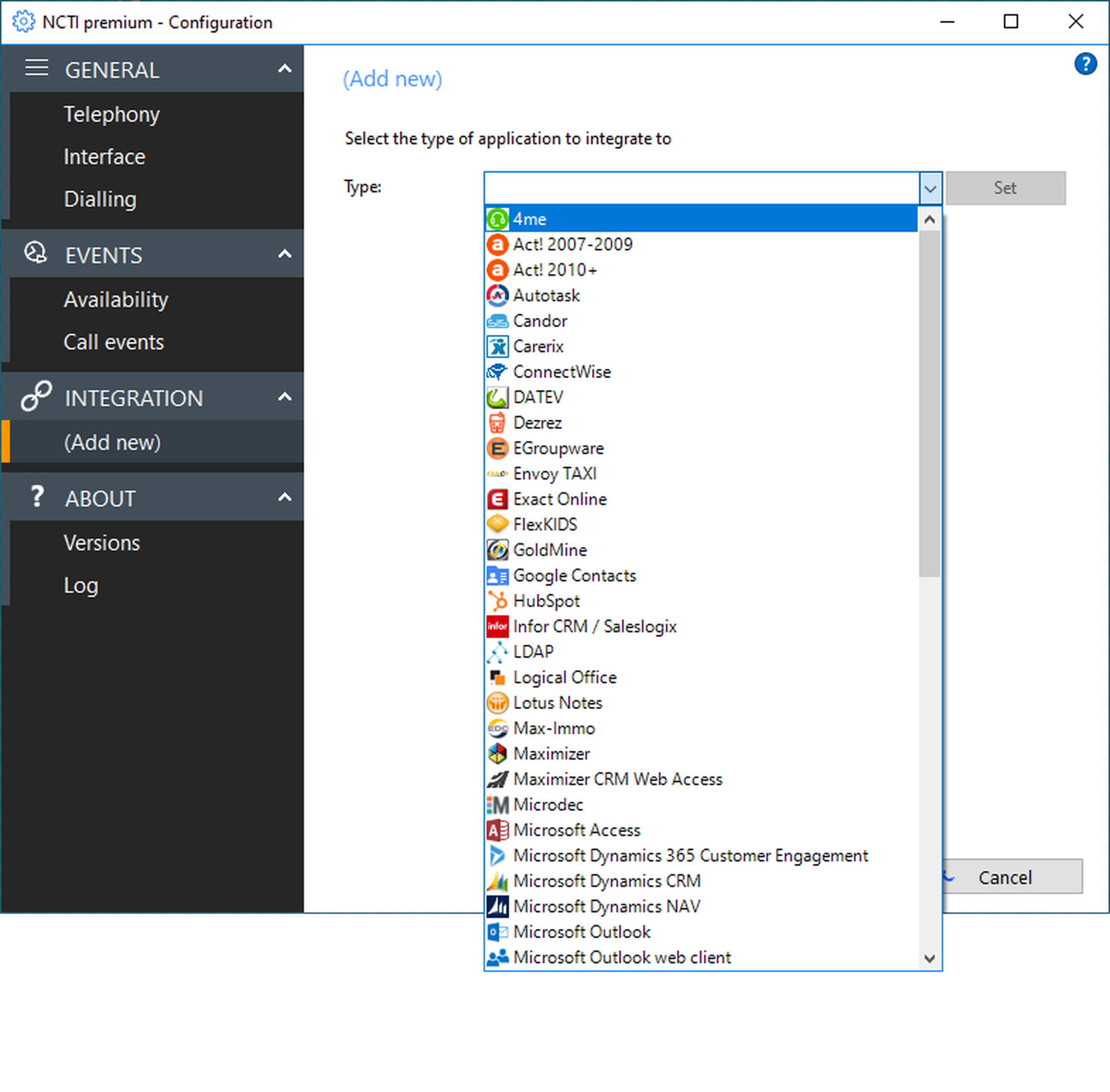 The integration enables for connecting contact databases to your CTI client.