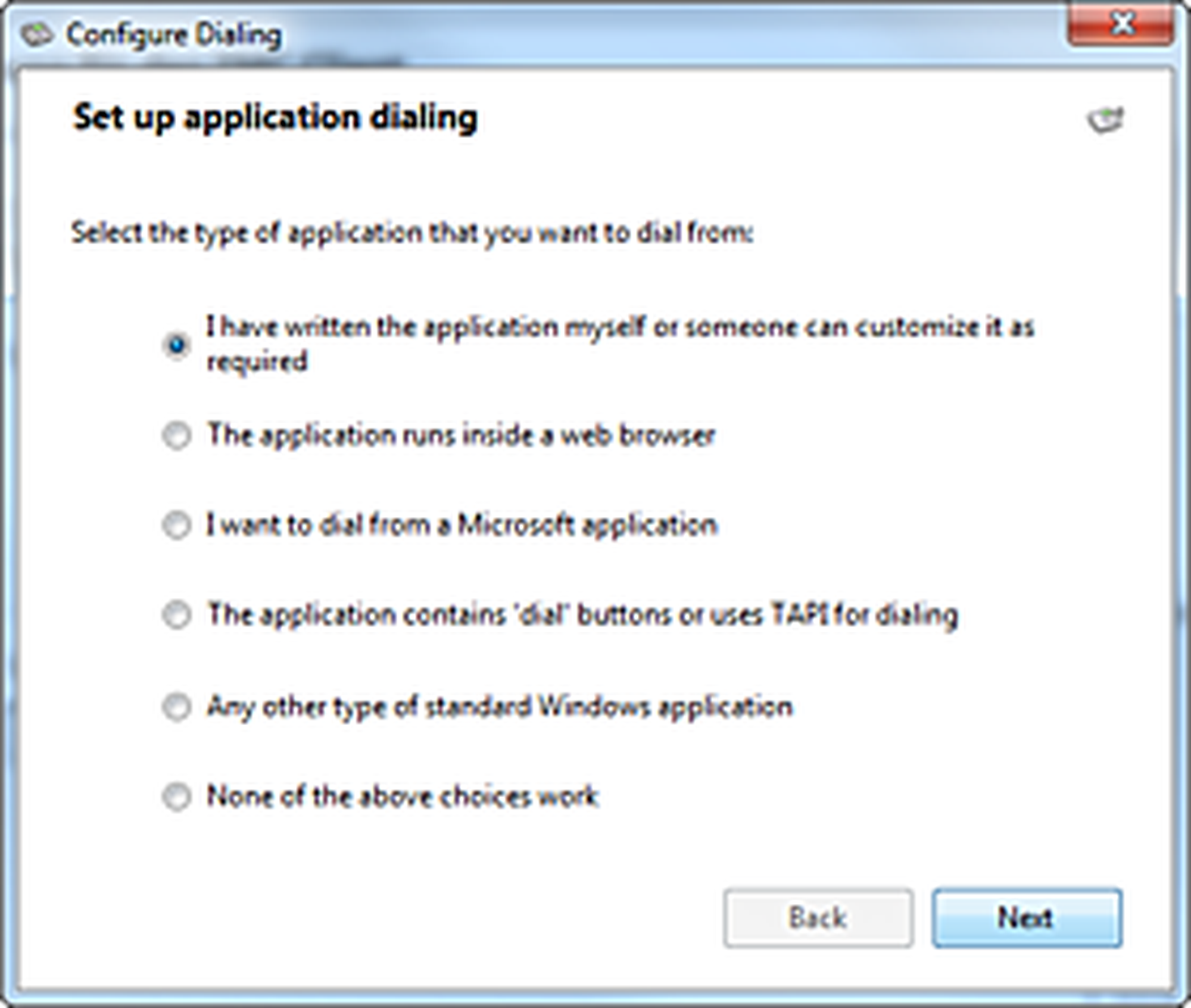 Configuration dialogue